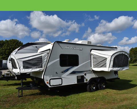 Travel light but sleep big. The 2017 Jayco Jay Feather M-17 XFD is a compact, efficient travel trailer built for those who want maximum utility in a minimal footprint. With sleeping space for up to eight, full wet bath, functional kitchen, and durable construction, it’s ideal for couples, small families or friends looking to hit the road without sacrificing comfort.